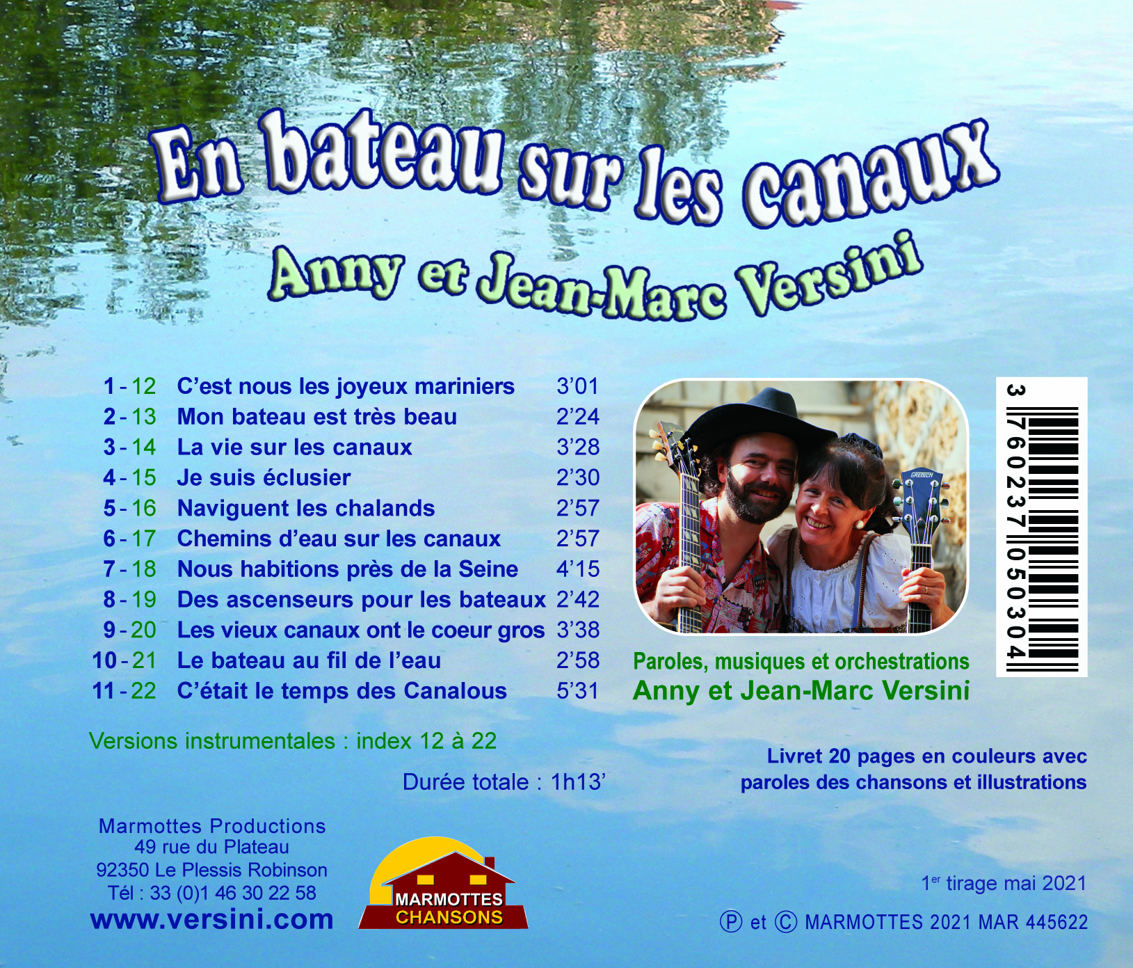 Après le CD Le cheval et la roulotte, Anny et Jean-Marc Versini nous entraînent, cette fois-ci, en bateau sur les canaux et les rivières de France. Et oui, avec une vingtaine de croisières fluviales à leur actif, la navigation, ça les connaît !